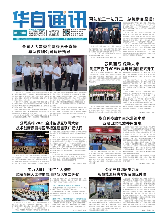 全国人大常委会副委员长肖捷 率队莅临公司调研指导 两站竣工一站开工,总统亲自见证! 公司亮相 2025 全球能源互联网大会 ,技术创新探索与国际标准建言获广泛认同 驭风而行 绿动未来 | 洪江市托口 60MW 风电场项目正式开工 华自科技助力南水北调中线西黑山水电站并网发电 实力认证!“共工”大模型 荣获全国人工智能应用创新大赛二等奖! 公司亮相印尼电力展,智慧能源解决方案获国际关注