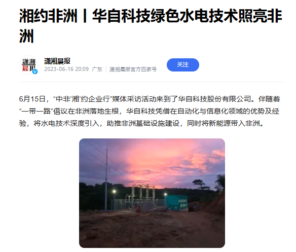 潇湘晨报:华自科技绿色水电技术照亮非洲