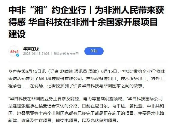 华声在线:为非洲人民带来获得感,华自科技在非洲十余国家开展项目建设