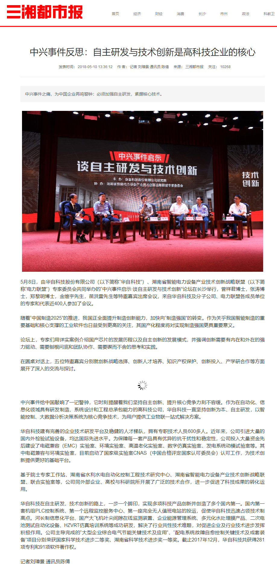 5月8日,由拼搏在线体育网,(以下简称“华自科技”)、湖南省智能电力设备产业技术创新战略联盟(以下简称“电力联盟”)专家委员会共同举办的“中兴事件启示·谈自主研发与技术创新”论坛在长沙举行,曾祥君博士,张涛博士,郑黎明博士,金维宇先生,苗洪雷先生等特邀嘉宾出席会议,来自华自科技及分子公司、电力联盟各成员单位的专家和代表近400人参加了会议。